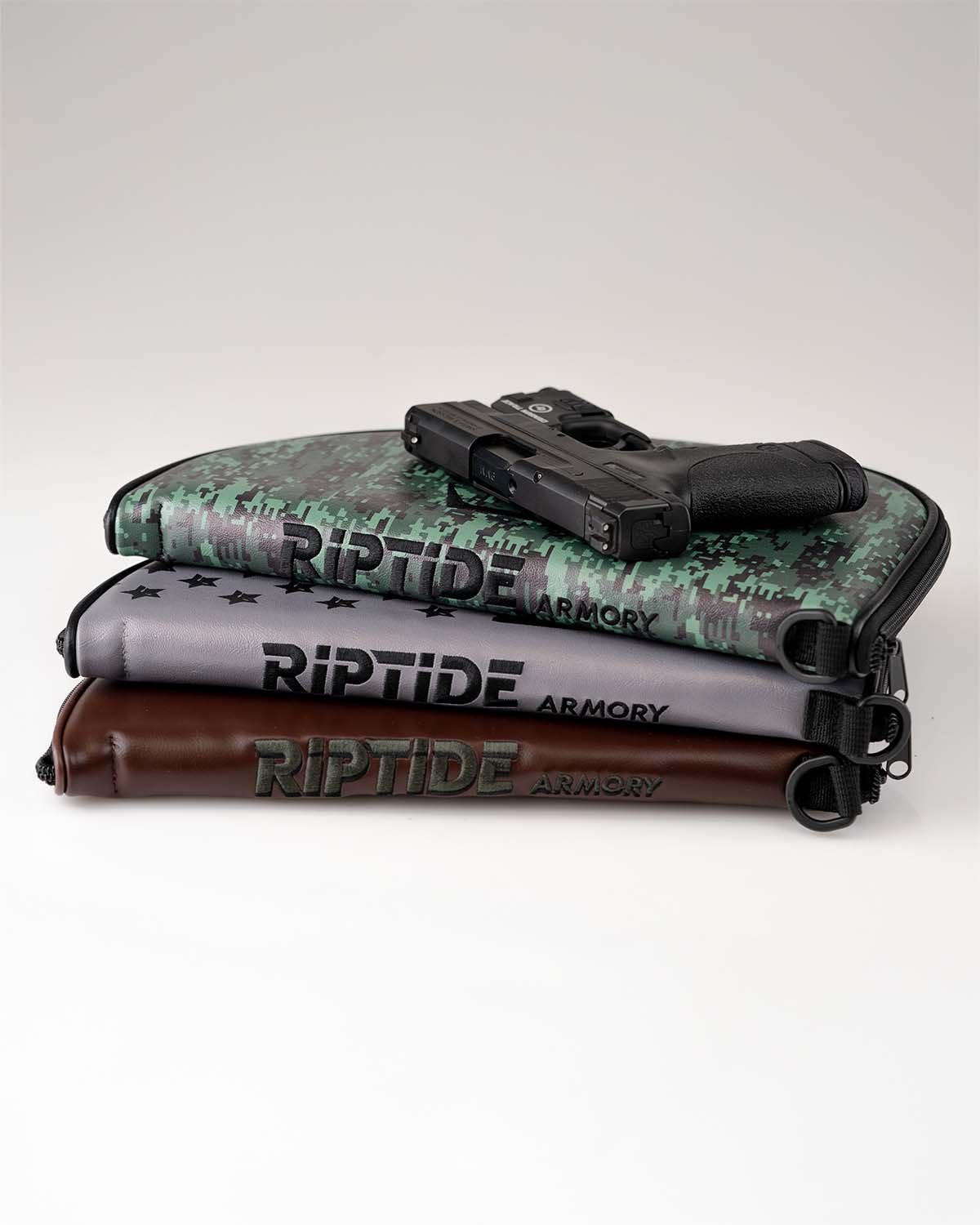 Protect your firearm in our new soft shell pistol case built for durability, security, and style. Featuring a soft, anti-scratch interior, thick impact-absorbing padding, and high-quality stitching, this case keeps your pistol safe whether you’re transporting it, storing it, or setting up at the range. Available in three unique designs with a lockable zipper for compliant, secure carry — all while laying flat when opened for easy use on any bench or lane.